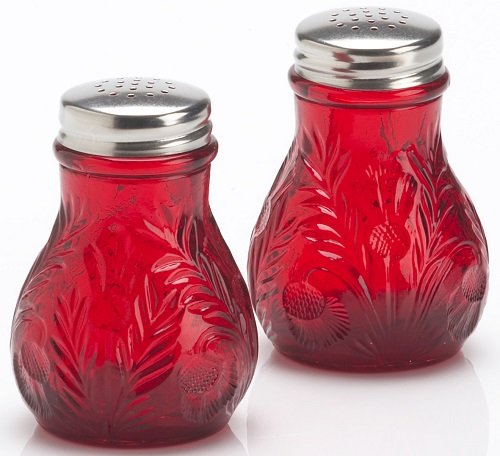 Salt & Pepper Shaker Set - Inverted Thistle Pattern - Red - Mosser Glass - American Made