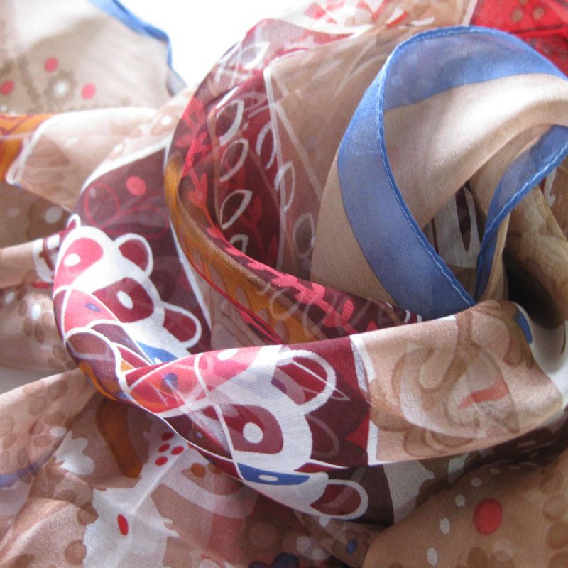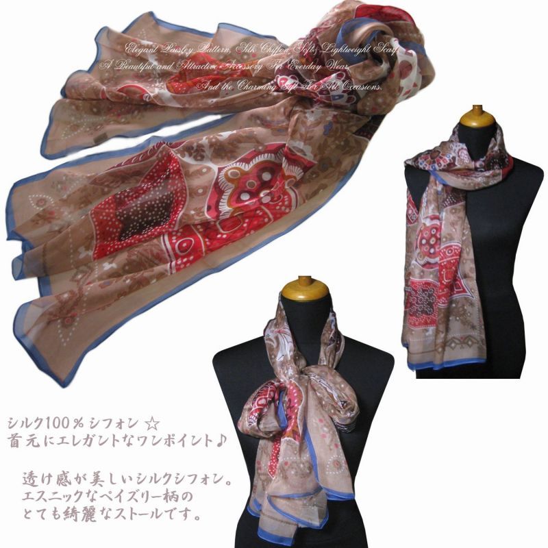| シルク100%シフォン エスニックなペイズリー柄のストール | |