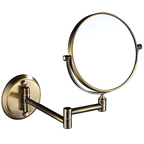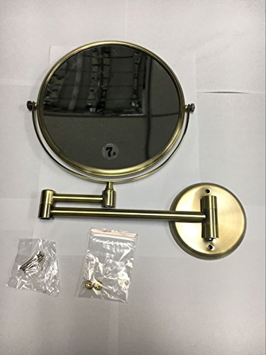 LeHang 8 Inch Antique Dual Sided Wall Mount Makeup Mirror with 5-7X Magnification,Antique brass Finish LA3003 (8in,7x)