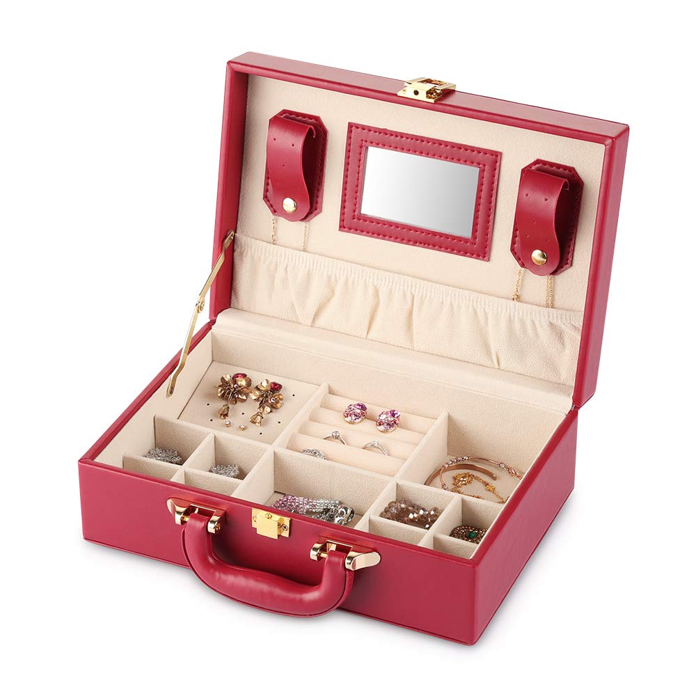 外はPUレザーで、内部はベルベットでジュエリーを傷つけず大切に保管できます。指輪、ピアス、腕時計、ブレスレット、イヤリングなどを一目でパット見渡せるから選ぶのも非常にスムーズになります。プレゼントやご褒美ジュエリーをきれいに飾るように仕舞えば見て楽しめて自分だけの特別な宝箱にしましょう。