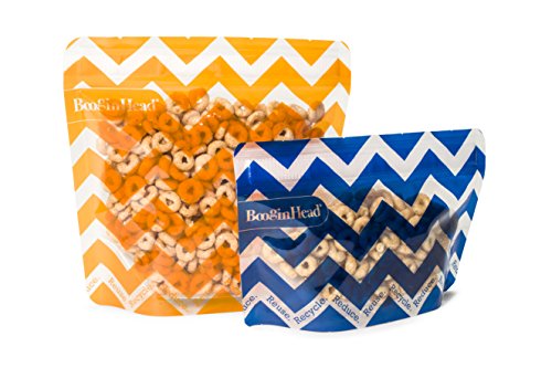 [Description] Reusable snack bag with stand-up_ gusseted bottom Easy to open VELCRO and Press-Lok closure Made of BPA-_ PVC- and phthalate-free environmentally-friendly plastic Dishwasher-safe and recyclable BPA_ PVC & phthalate free Top-rack dishwasher safe Envirofriendly and cost conscious Perfect for lunch boxes and travel Two sizes in each package: 1 small and 1 large pouch