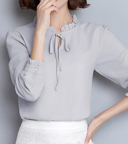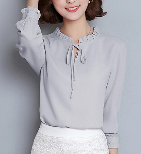 -. Title : (エンジェルムーン) AngelMoon ブラウス オフィス OL 長袖 シフォン フリル リボン レディース