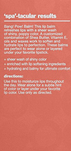 From our spa to your skin you've put your trust in us to care for your skin with our legendary spa services and world famous skin care products. Now we’re excited to introduce the next step to achieving complexion perfection. We like to call it tinted skincare. We’ve poured our innovative spa ingredients and advanced technologies into our tinted skincare products, so you’ll know they’re good for you and your skin. Spatacular results: bang. Pow. Balm. This lip balm refreshes lips with a sheer wash of shiny, poppy color. A customized combination of shea butter, vitamin e, oils and waxes work to soften and hydrate lips to perfection. These balms are perfect to wear alone or layered under your favorite lipstick.Feature