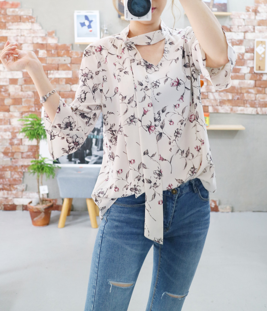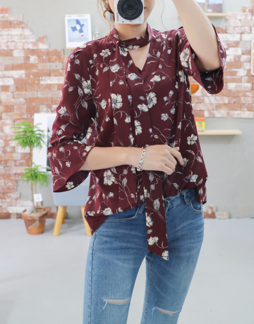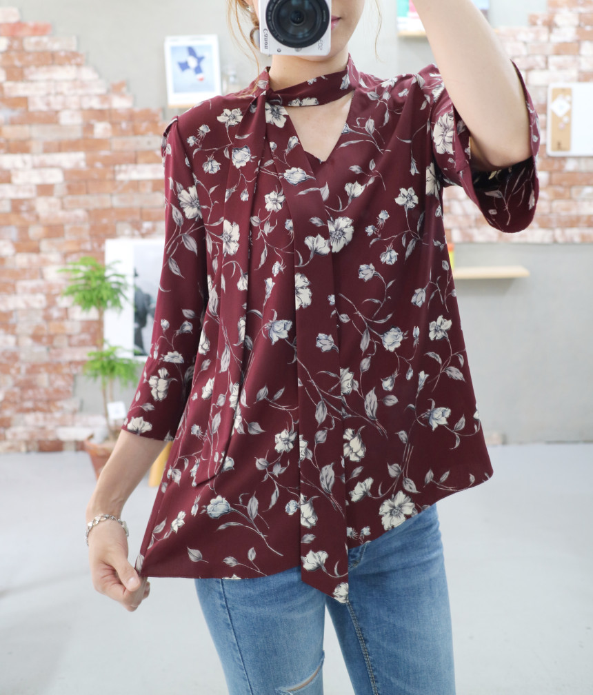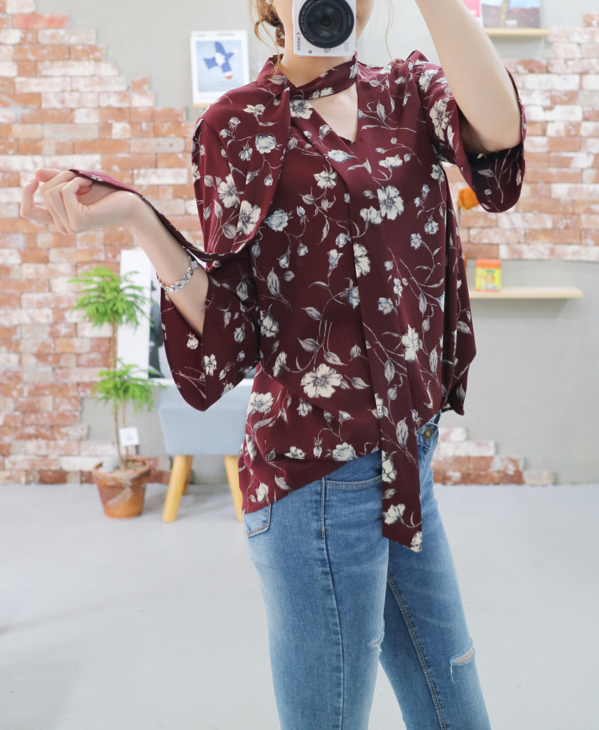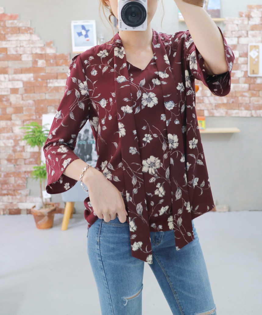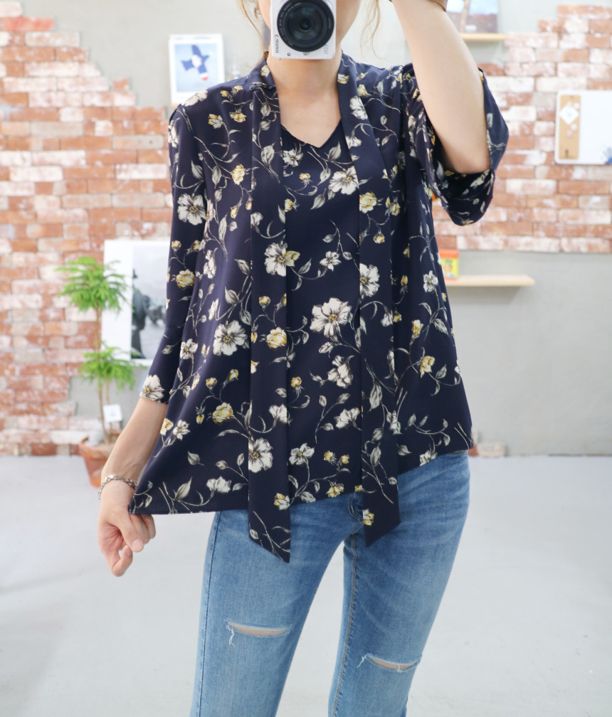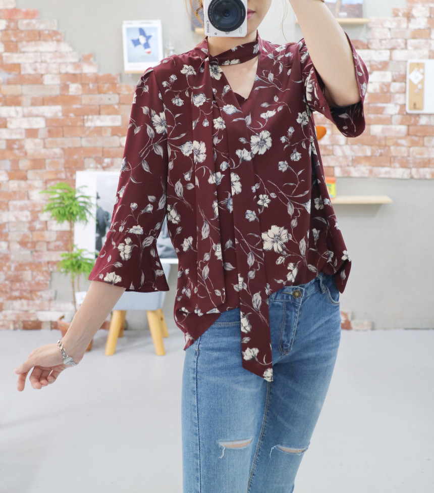 Autumn Thai Flower Chiffon Blouse Coordination Scarf