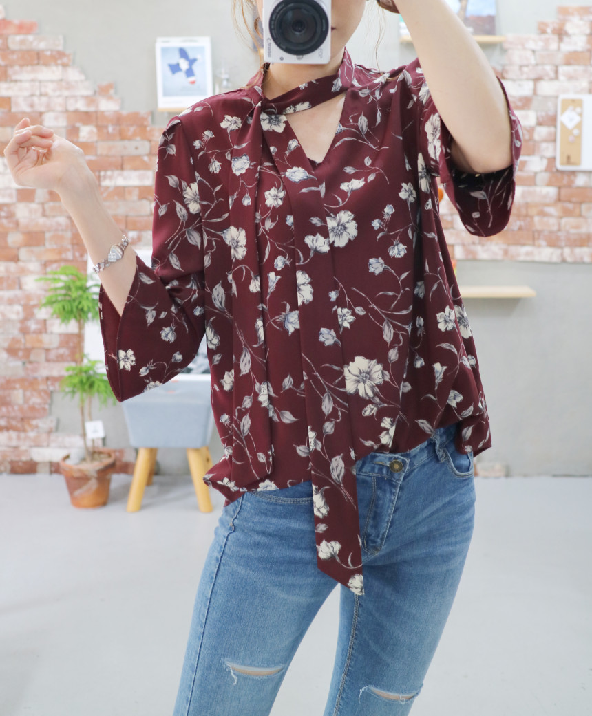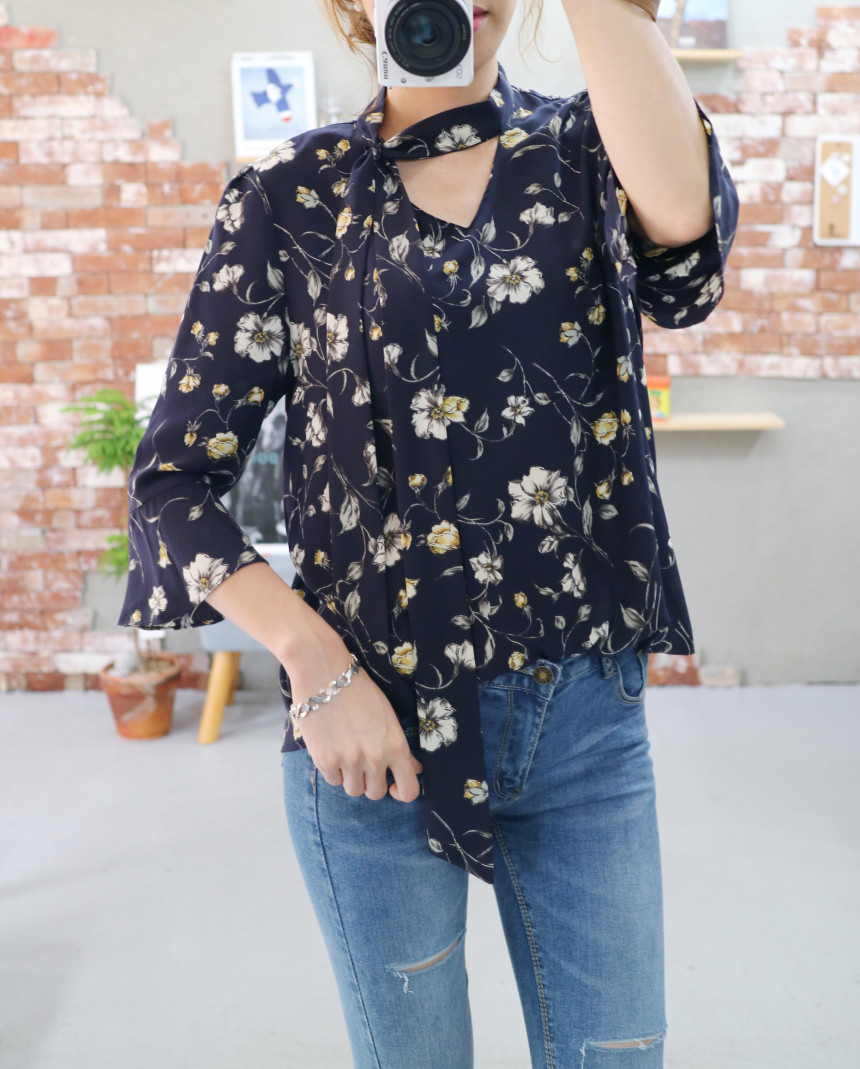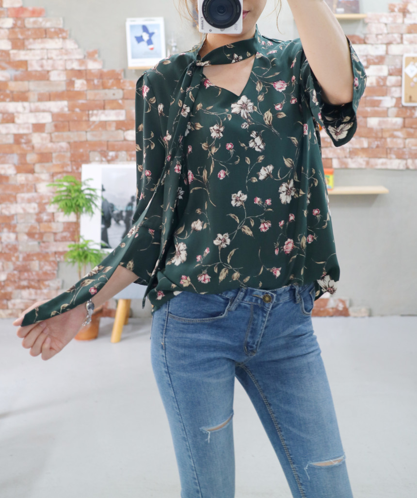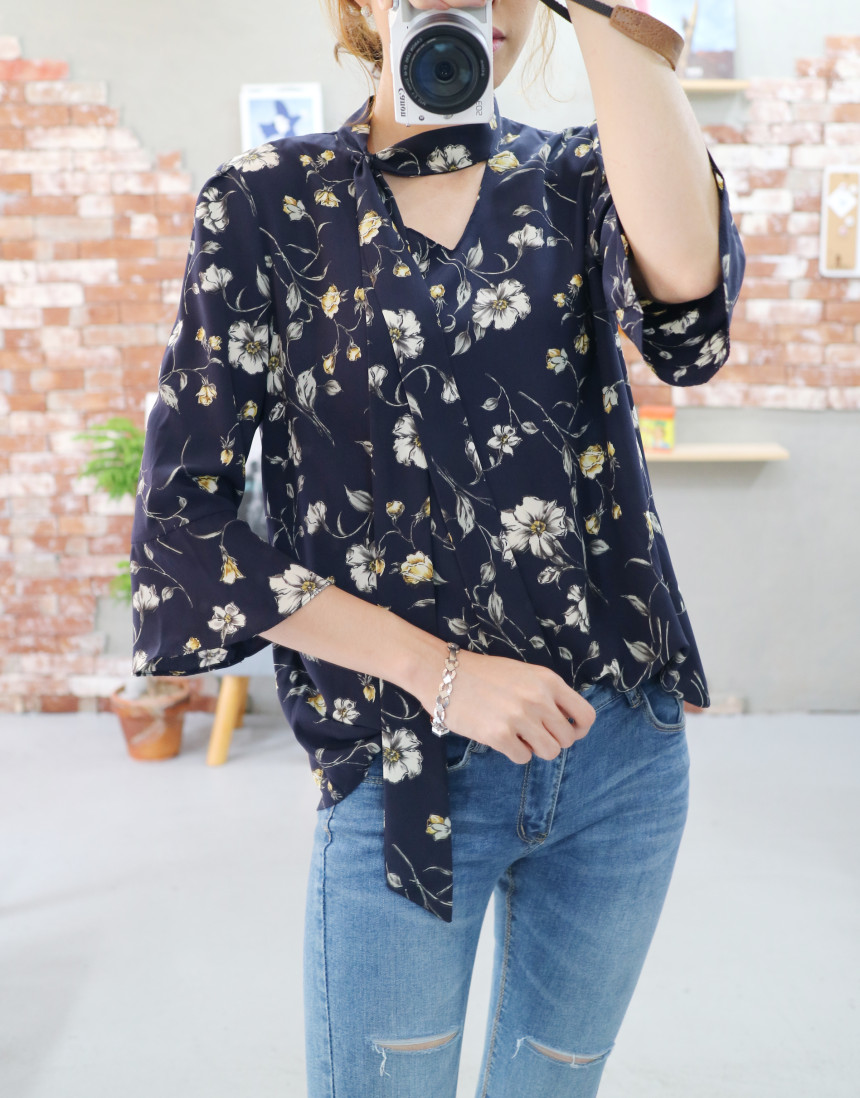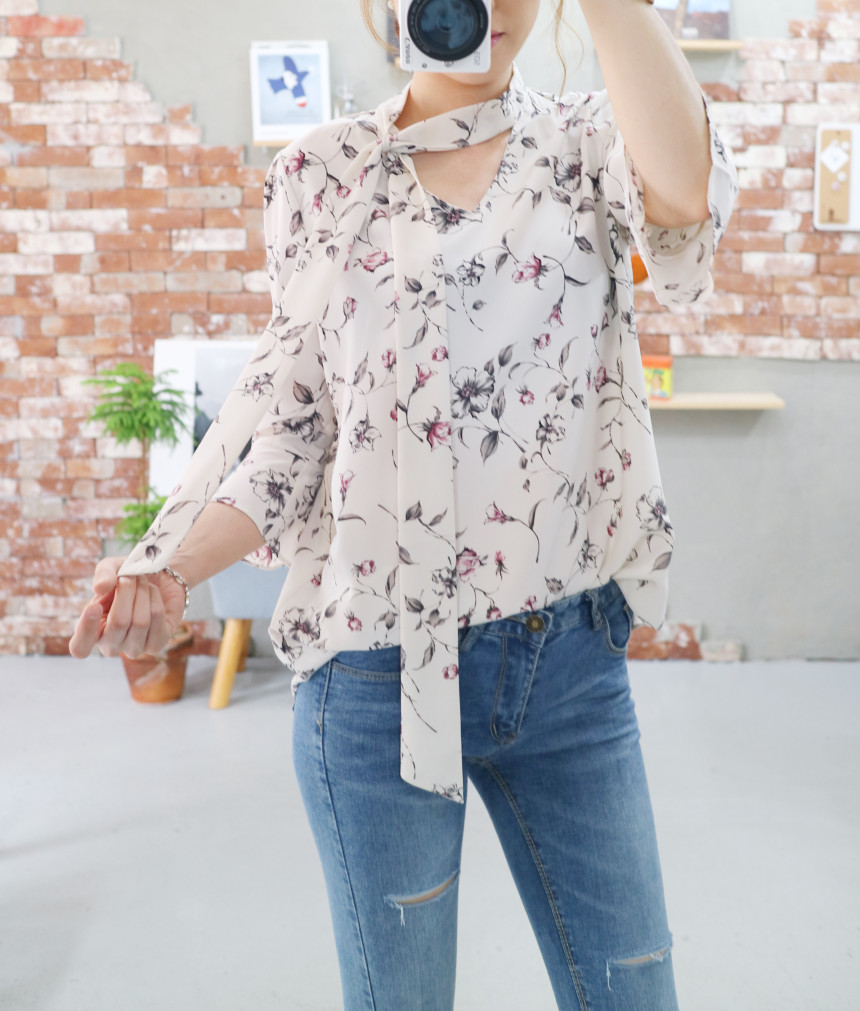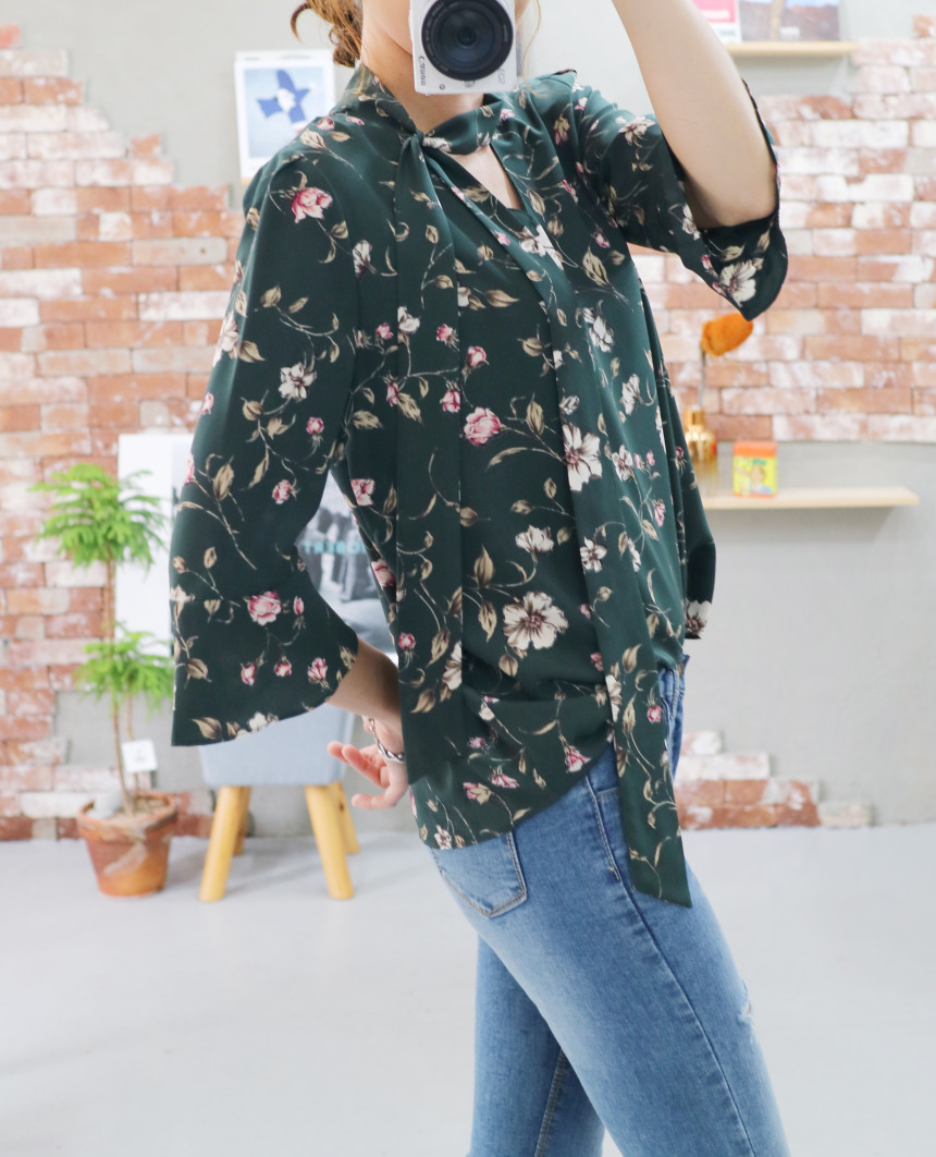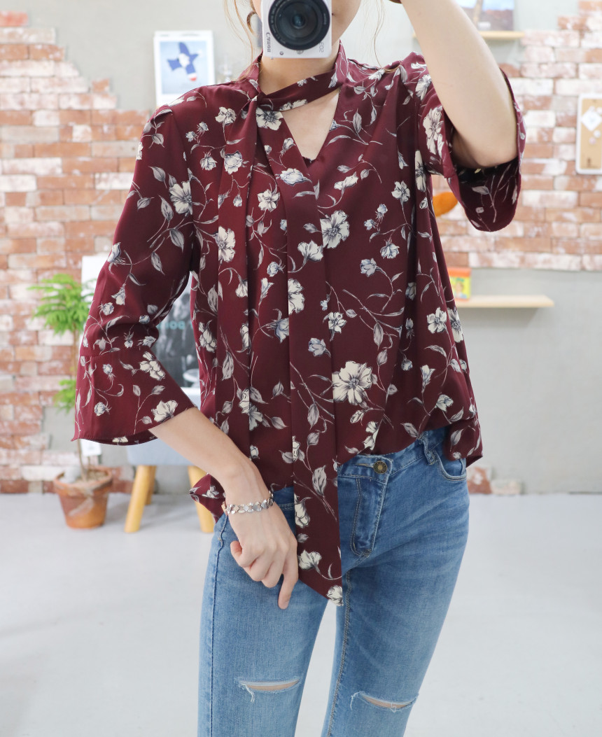 Autumn Thai Flower Chiffon Blouse Coordination Scarf