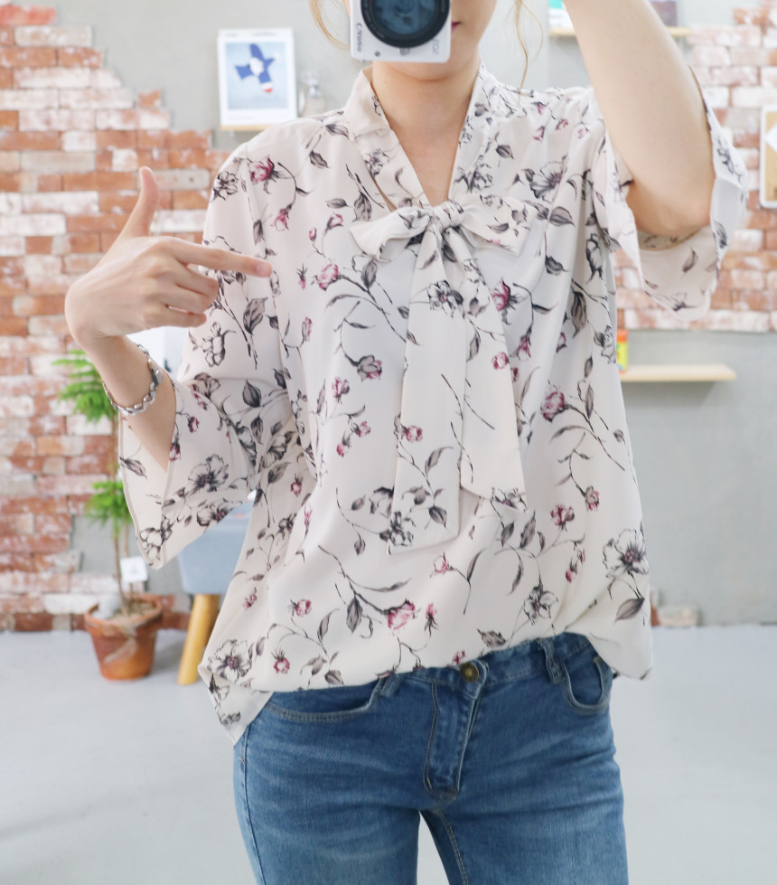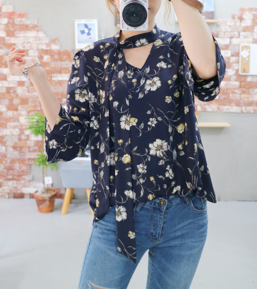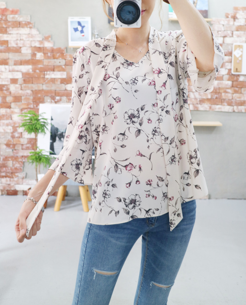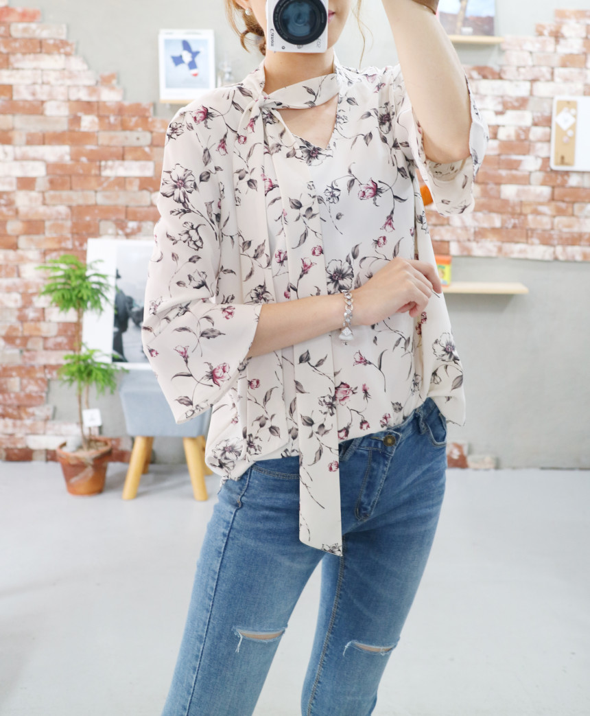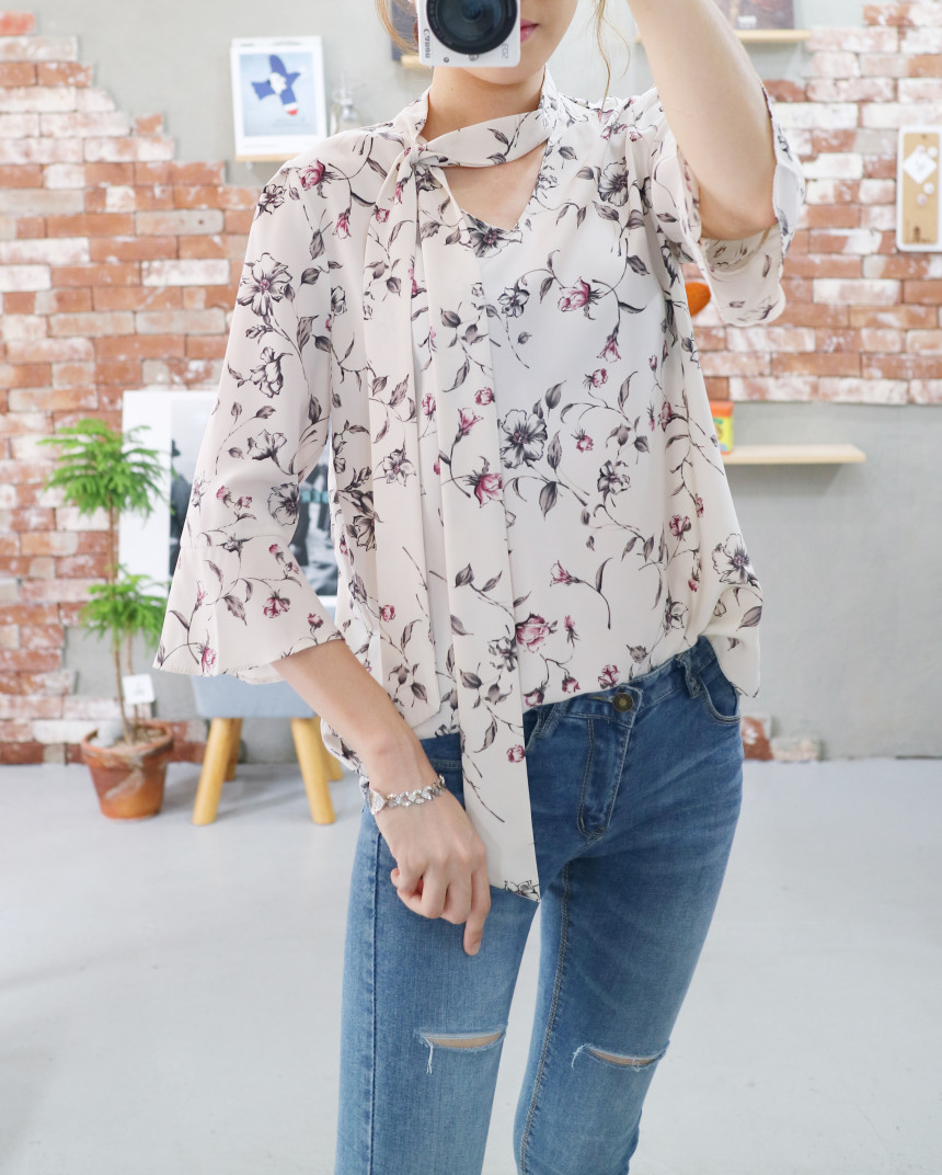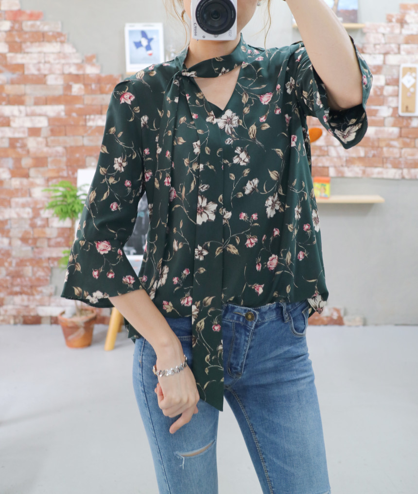 Autumn Thai Flower Chiffon Blouse Coordination Scarf