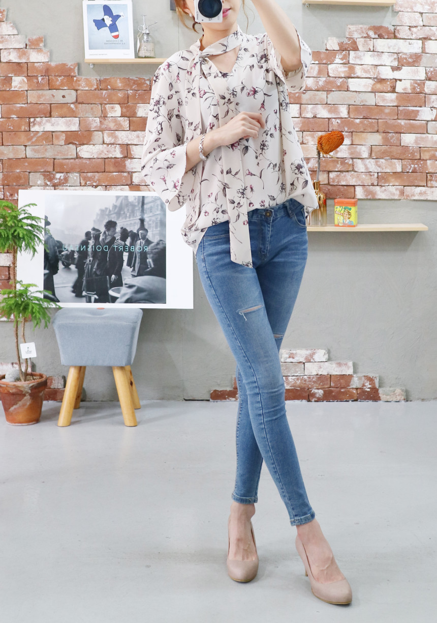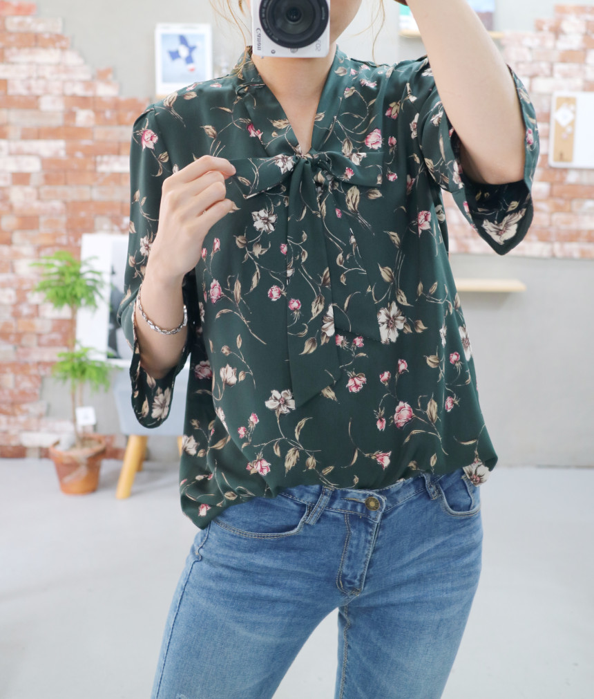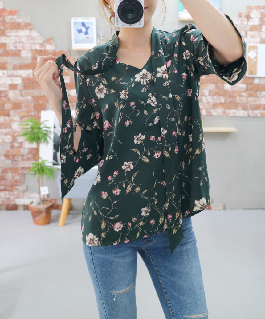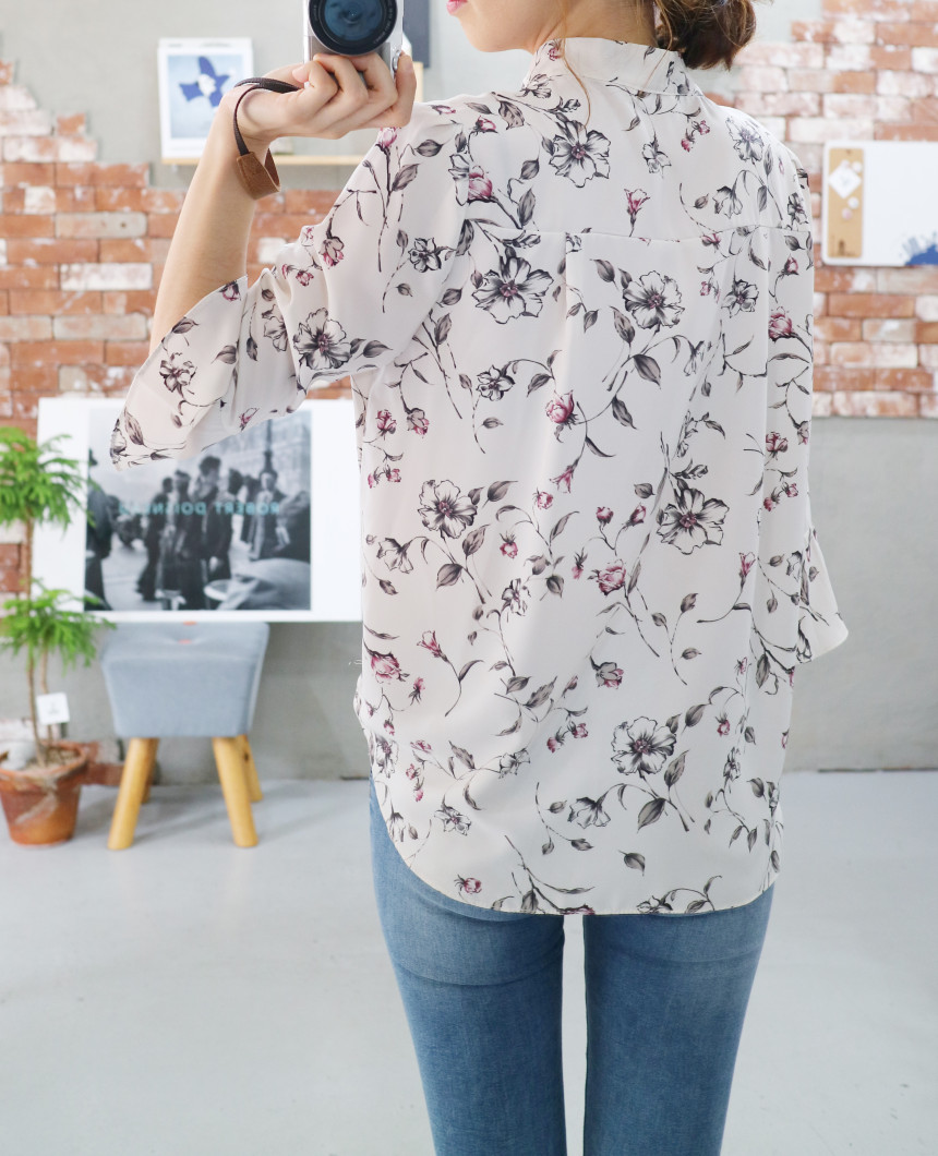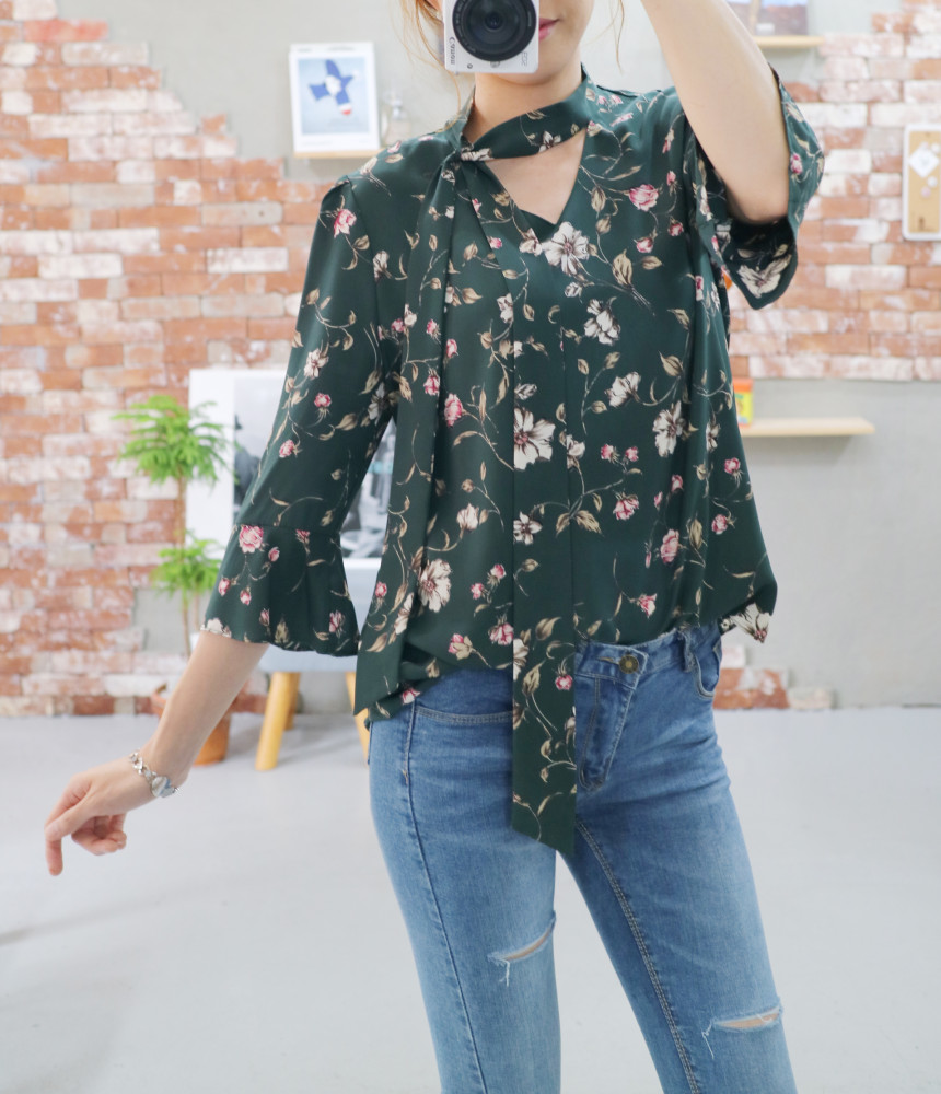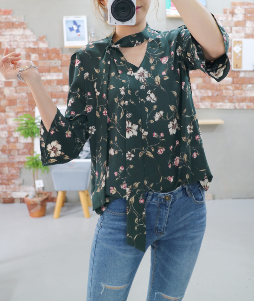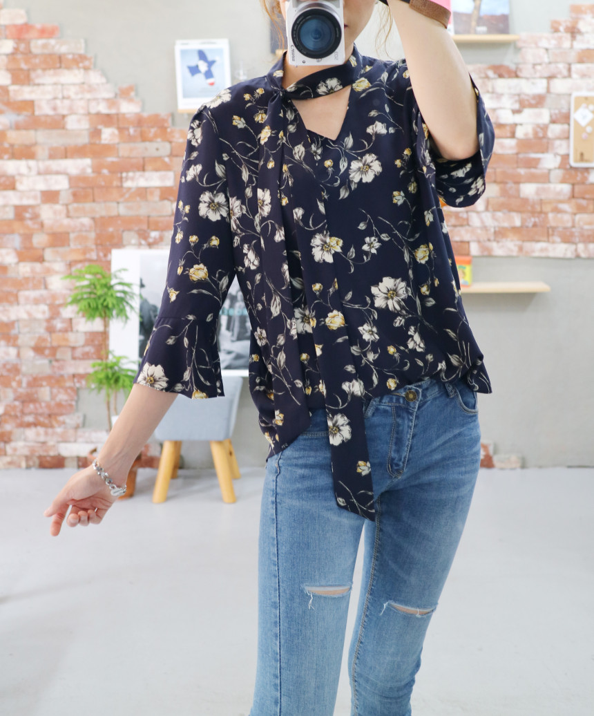 Autumn Thai Flower Chiffon Blouse Coordination Scarf