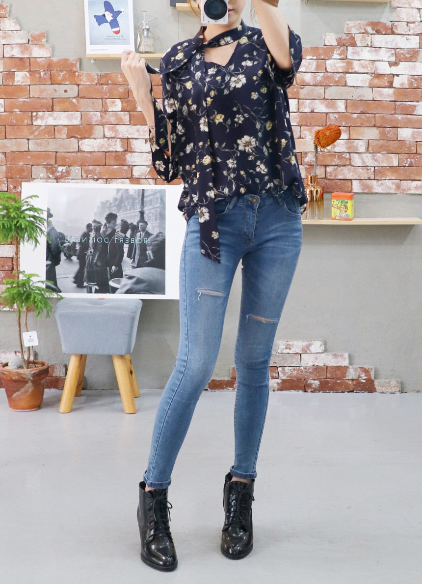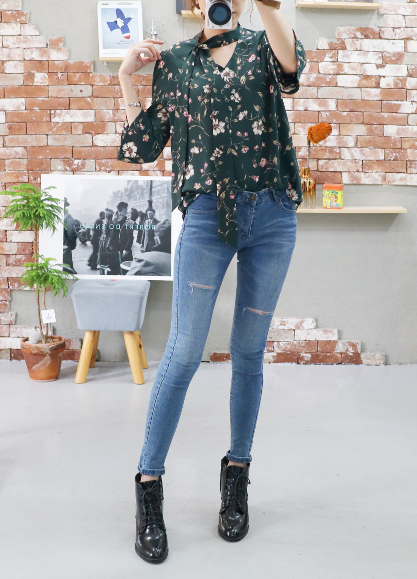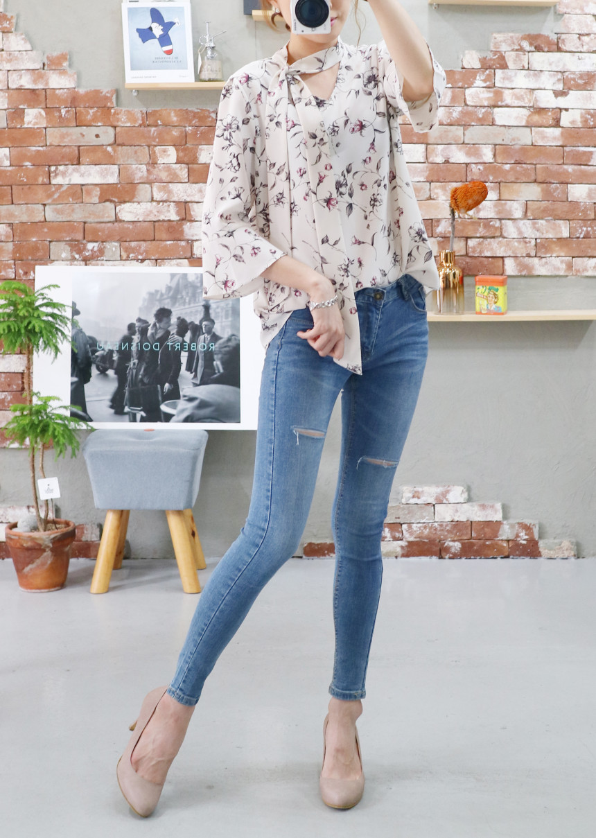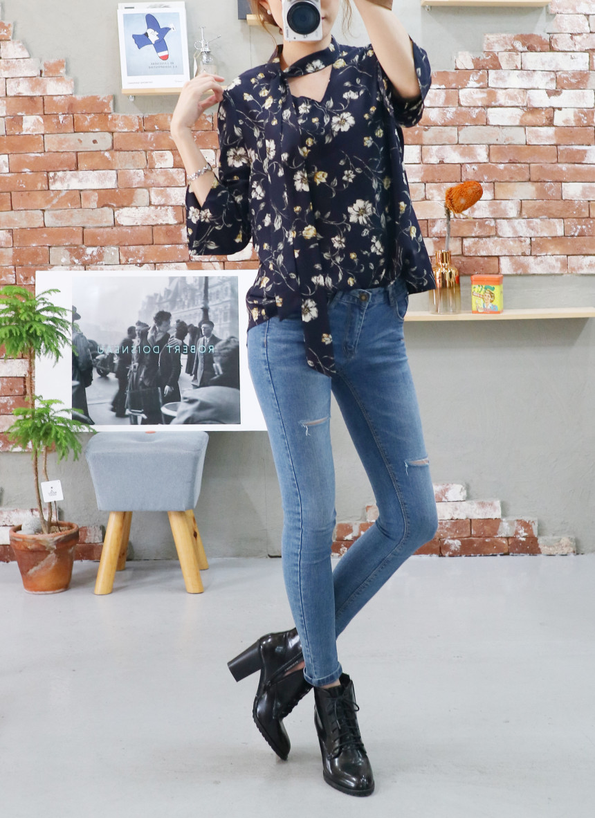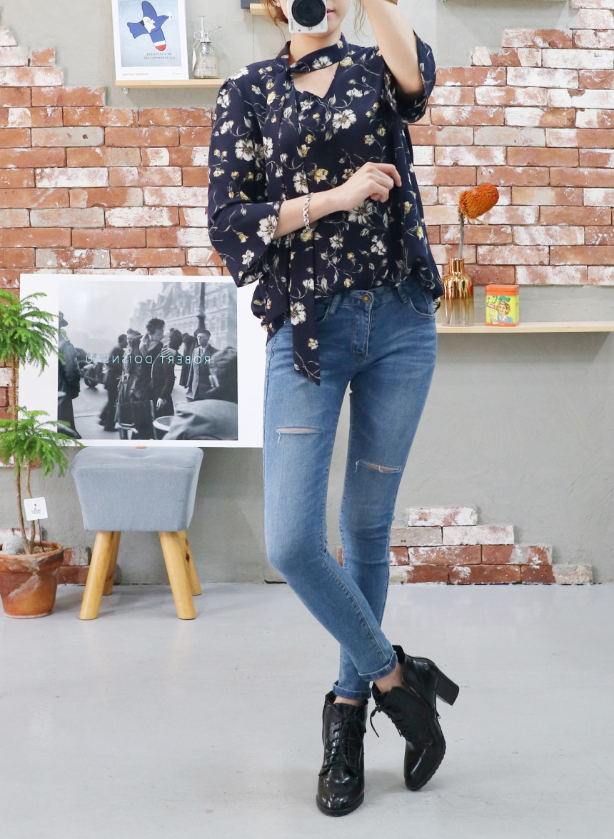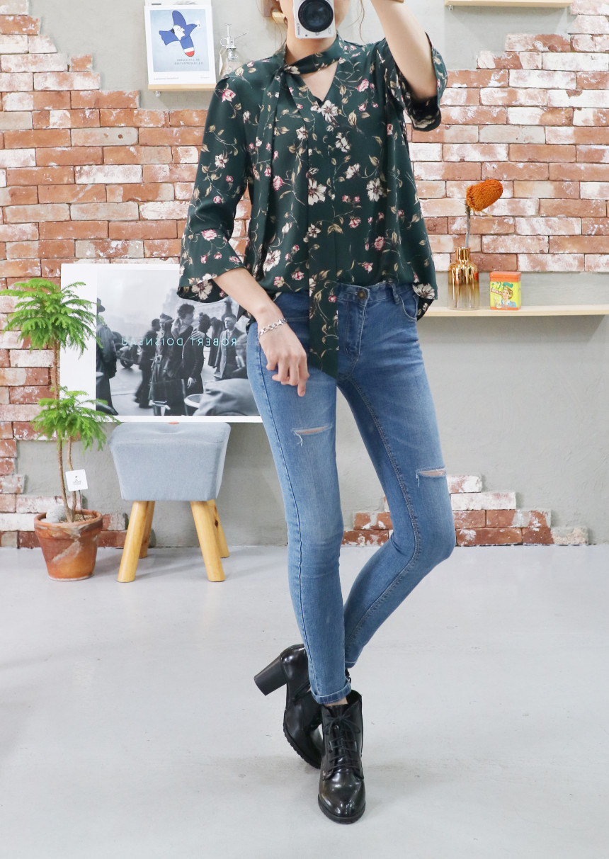 Autumn Thai Flower Chiffon Blouse Coordination Scarf