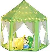 This princess castle play tent is an adorable Christmas or Birthday gift for your kids. Your lovely princess will surely enjoy herself for hours in it when playing dress-up, have fun with friends, or read, etc, your kids will love this play tent definitely! It also Encourages dramatic play and provides hours of fun for kids! Inspire children's imaginations while giving them a private space of their own. Features: - Foster imaginative and creative play - Ideal for home, backyard, parks, parties, day care and more - Mesh windows allow air in and keep bugs out - Small size is easy to fit in compact home or kids room - Lightweight and portable with a zipper carry bag - Easy to clean with damp cloth & mild soap - Comes complete with sturdy poles for quick and easy assembly - Fast and easy set up/breakdown with no tools required - Tent folds flat for convenient storage when not in use - Material: 100% Polyester fabric & Plastic pole - Tent Dimension: 55" (Diameter) x 53" (Height) - Comes with a 23 feet string star lights powered by 3*AA batteries(batteries are not included)Feature