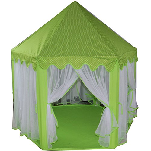 LARGE CAPACITY - 55" in Diameter and 53" in Height. Hexagon shape design provides a perfectly sized space,holds up to 3 kids under 12, giving your children plenty of room to stand and play, even an adult can fit inside. EASY SETUP - Your princess can easily to assemble her own castle under adult's supervision. Fast and easy set up/breakdown for the first time with no tools required by following the instruction included. FOLDABLE & PORTABLE - Comes with a zipper carrying bag, making it easy to st