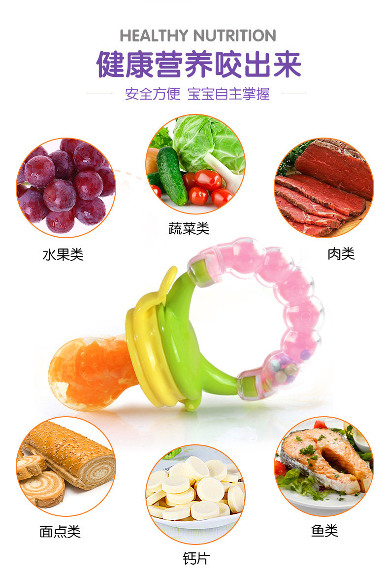 宝宝辅食器工具儿童吃水果蔬菜奶嘴牙胶婴儿磨牙棒训练器咬咬袋乐