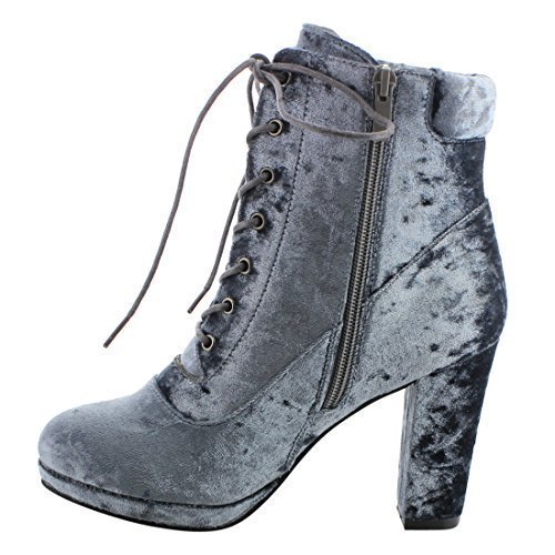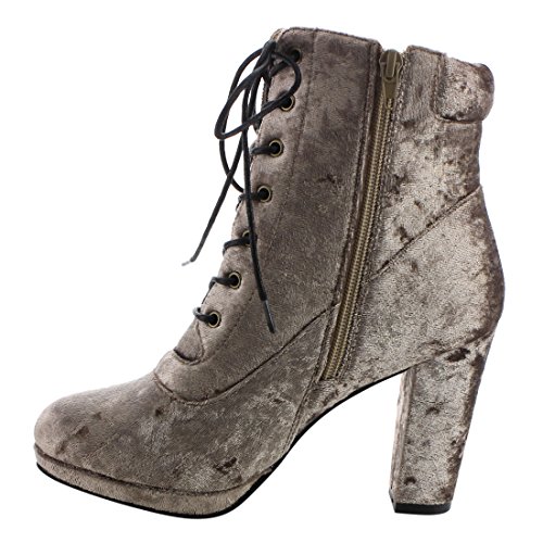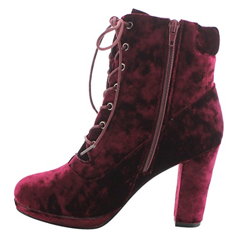 NATURE BREEZE EK57 Women's Lace Up Side Zipper Platform Block Heel Ankle Booties