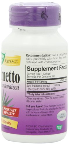 -. Binding : Health and Beauty -. Brand : Nature's Way -. Label : NATURE'S WAY -. Manufacturer : NATURE'S WAY -. PackageQuantity : 1 -. ProductGroup : Health and Beauty -. ProductTypeName : HEALTH_PERSONAL_CARE -. Publisher : NATURE'S WAY -. Studio : NATURE'S WAY -. Title : Nature's Way Saw Palmetto