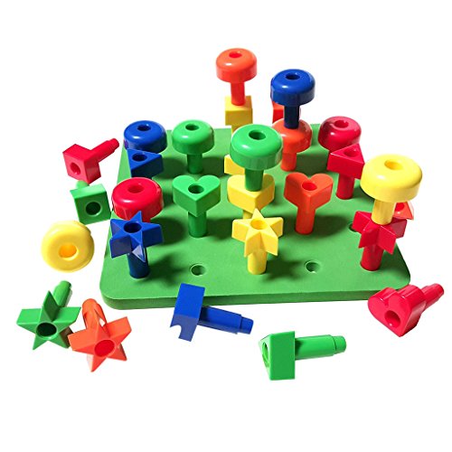 -. Feature : Color Matching: the peg board set has 30 pegs in a board in 6 colors and large foam pegboard. Babies and toddlers easily match colors as they stack and nest the pegs into each other / Oversize Pegs are easy for little fingers to grasp and stack on the peg boards and each other to build towers while stacking. The size makes them ideal for occupational therapy toys for children and for toddler gifts / Fine Motor Skills Development: the pegboard stacker set is great for building fine motor skills, hand eye coordination, develop and strengthen visual perception skills, visual motor coordination, making patterns more / Games for toddlers: use with your child for sorting, color recognition, patterning, learning basic math skills such as counting, adding, subtraction and graphing. The best part about these fine motor skills toys Montessori set is that your little ones won't even notice that they are learning as they "play" / Easy Storage Travel Toys: it comes with the drawstring backpack to conveniently store all the toddler games pieces. It is easy for your child to carry their peg board set at home, in the car or airplane. Makes for quick and easy clean up