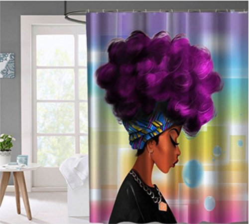 Women Black shower curtain Chengsan African Women with Purple Hair Hairstyle- Waterproof Mildew Resistant Fabric Polyester 100% Shower Curtain. 65"W71"H