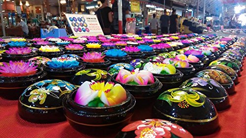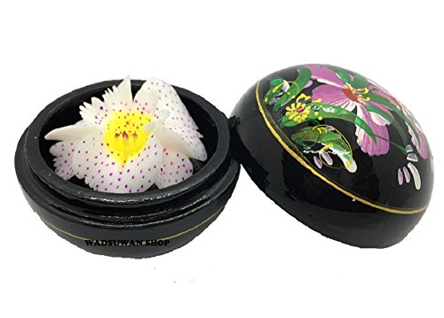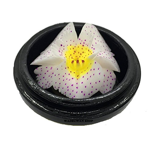Thai Hand-Carved Soap Flower, 3 Inch Scented Soap Carving Gift-Set, White Pink Orchid In Decorative Wood Case, By WADSUWAN SHOP. (No11).