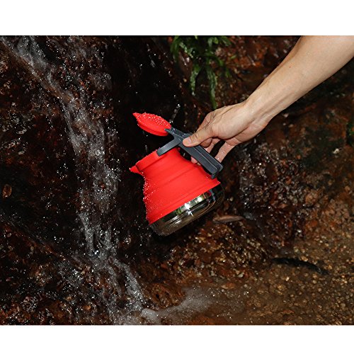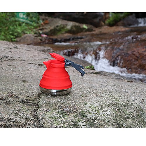 CXAK Outdoor Portable Collapsible Silicone Tea Kettle for Home Camping and Other Places Stainless Steel Base,1.2 L, Compact and Lightweight