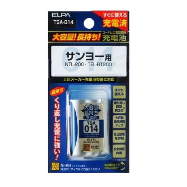 自己放電を抑制します。さらに安全装置が内蔵されています。 製造国:中国 仕様:適合機種・サンヨー:NTL-200・TEL-BT200 同等品電話機用3.6V 800mAhニッケル水素充電池(充電済) ※サプライヤー直送品 ご注文後2~3営業日後の出荷となります【商品名】ELPA(エルパ) 大容量長持ち充電池 TSA-014 1831100