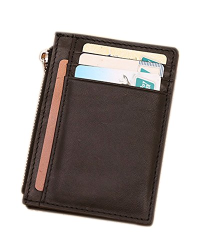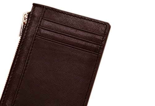 Foryee Genuine Leather Slim Mini Front Pocket Wallet With Zipper for Men and Women - Coffee