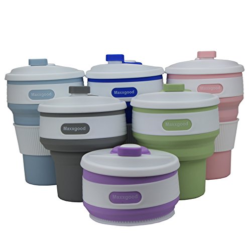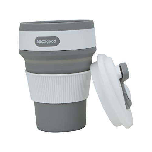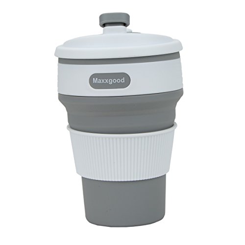 Maxxgood Collapsible Coffee Mug with Lid Leak-proof 12oz 350ml Food-grade Portable Travel Water Bottle for Camping Hiking and Picnic BPA Free 100% Eco-friendly FDA Approved
