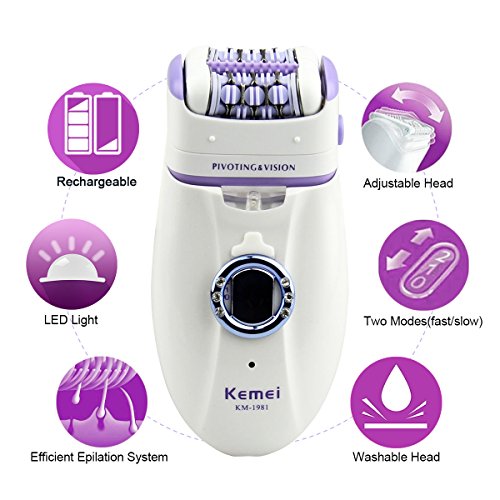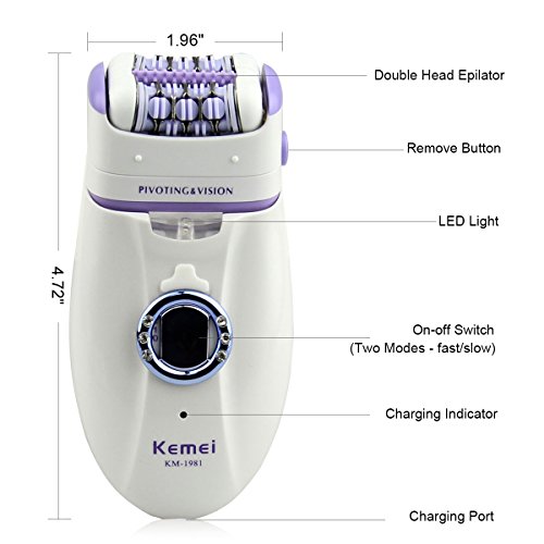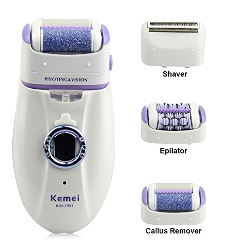 - Pivoting Head for High Efficiency: Epilator with dual heads,shaver with floating heads for all the contours and curves of the female body;callus remover with two exquisite scrub rollers for removing dead skin quickly