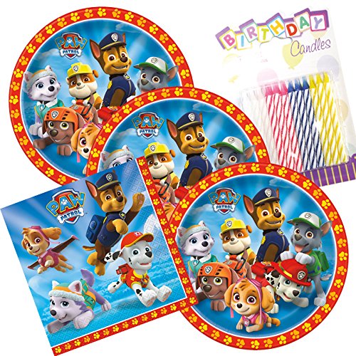 Paw Patrol Theme Plates and Napkins Serves 16 With Birthday Candles