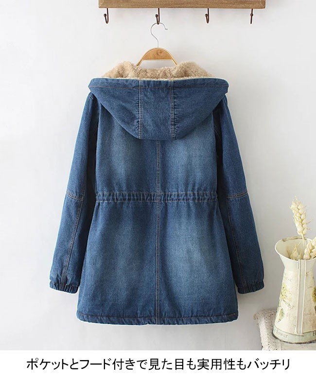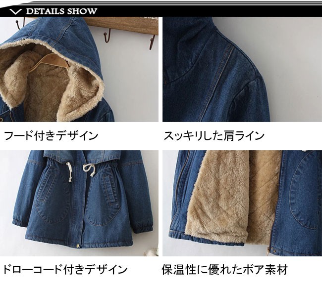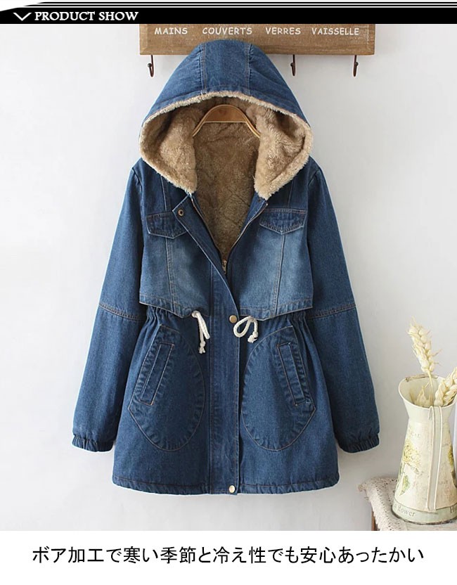| 商品名 | デニムジャケット デニムコート レディースブレザー フード付き レディースジャケット ロング丈 アウター ポケット付き 裏ボア ジージャン Gジャン ウェスト紐 大人 女性用 オシャレ 秋冬 |