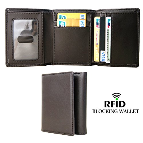 RFID Blocking Wallet , Mens RFID Blocking Trifold Leather Wallet with ID Window