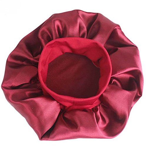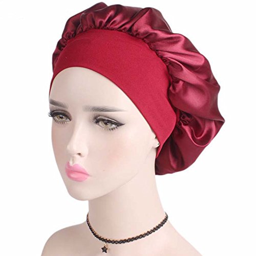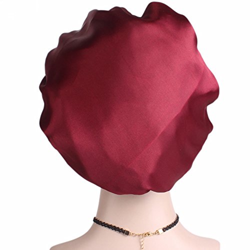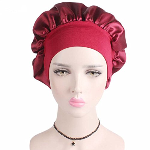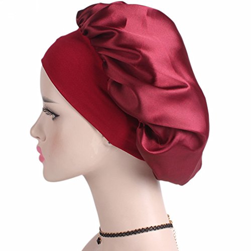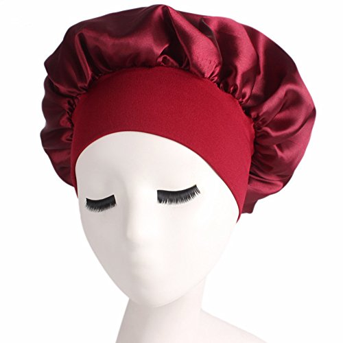 Women’s Elastic Wide Band Sleep Night Cap Head Cover Bonnet Hat for For Curly Springy Hair (Red)