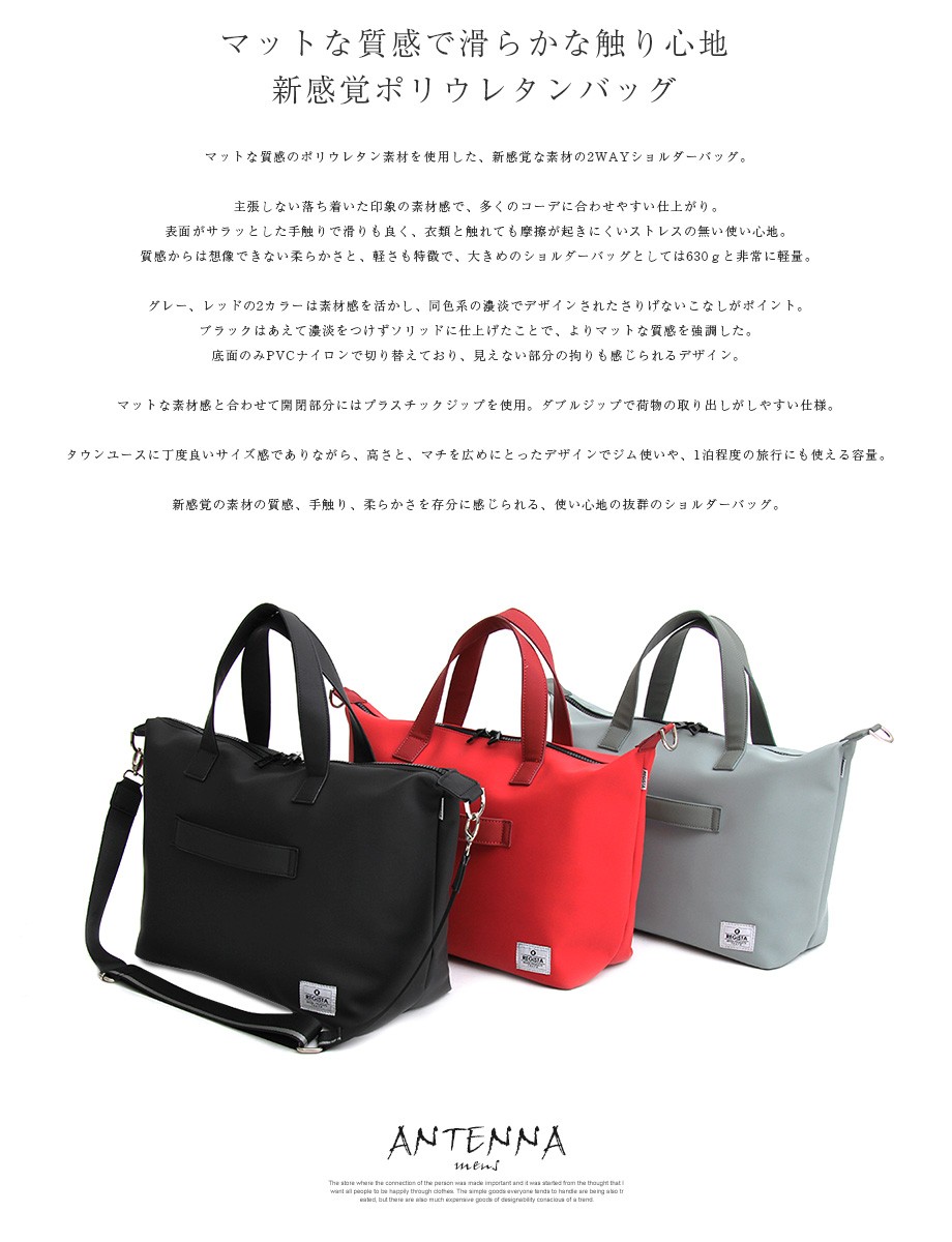マットな質感のポリウレタン素材を使用した都会的なデザインのエディターズバッグ。飾らないシンプルなスタイルが日常使いに取り入れやすいアイテム。僅か630グラムの非常に軽い仕上がりでジム用のバッグとしてもおすすめです。容量も抜群なサイズ感なので一泊程度の荷物なら十分に収納可能。