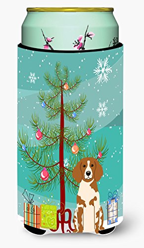 Caroline's Treasures Merry Christmas Tree Brittany Spaniel Tall Boy Beverage Insulator Hugger BB4197TBC, Multicolor