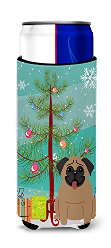 Caroline's Treasures BB4130MUK Merry Christmas Tree Pug Brown Michelob Ultra Hugger for Slim Cans, Multicolor