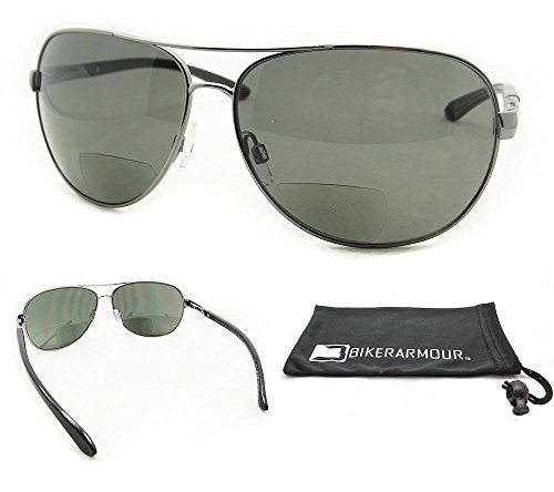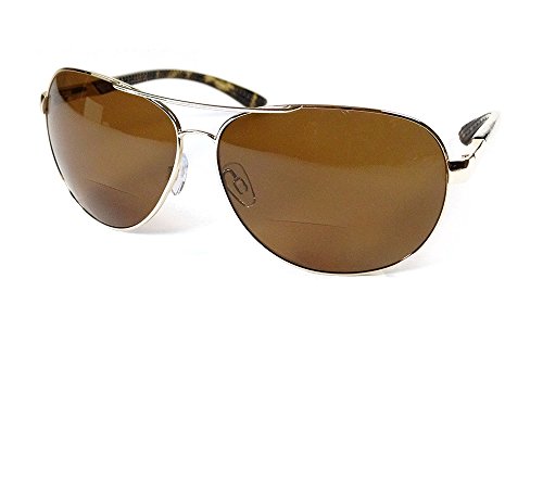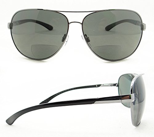 Product Description The classic tear drop aviator polarized sunglasses are the perfect combination of aviation polarized sunglasses with bifocal sun readers. The reading portions on the bottom of lenses are not so noticeable, so people can not tell that you're wearing sunglasses with bifocals. Convenient bifocal readers allow you to read your GPS, maps, books, or restaurant menus without switching your glasses. Imagine wearing these on your next beach vacation or lounging by the pool. Like all our polarized sunglasses, they are equipped with high quality TAC (Tri Acetate Cellulose) polarized lenses. With superior visual and polarization clarity, they are also hard coated to resist scratching and block out 100% of all harmful UV rays up to 400 nanometers. Polarized sun glasses eliminate glare from shiny objects such as chrome, mirrors, and water. Preferred by avid fishermen, polarized lens Sunglasses filter out the glare on the surface of lakes and oceans, and allows them to actually see beneath the water. While driving, polarized glasses can enhance and sharpen vision. They are also great to wear while driving in the rain. The high nickel metal frames are lightweight, durable and very comfortable to wear all day. Loaded spring hinges help to retain the original shape of sunglasses. 0