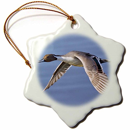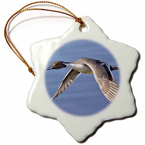 3dRose orn_45717_1 Male Northern Pintail Duck in Flight Anas Acuta Bolsa Chica Wetlands, California Snowflake Porcelain Ornament, 3-Inch