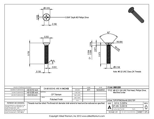Allied Titanium 0001281, (Pack of 50) #6-32 X 3/4 UNC Flat Head, Phillips Drive, Titanium Machine Screw, Grade 2 (CP)