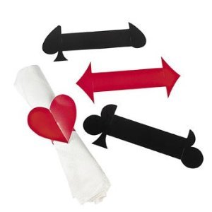 - Casino Napkin Rings. You can bet your guests will appreciate your attention to detail. These Casino Napkin Rings will let them know you are all in when it comes to style and decor. Decorate with hearts diamonds spades and clubs. Paper. (4 dozen per set) 8 Simple assembly required.