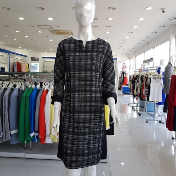 배색 사이바의 라글란 소매의 프린트H라인 원피스-JA7F9-WOP510-452