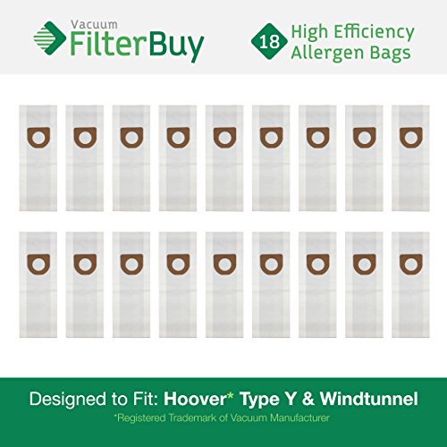 18 Hoover Windtunnel Upright Type Y Vacuum Bags. Designed by FilterBuy to Replace Hoover Part #'s 4010100Y, 4010801Y & 43655082