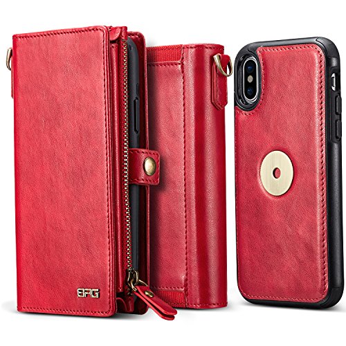 -. Feature : Design only for iPhone x; size: 15x8x4.3cm, weight: 165g / Fine workmanship: Precise cutouts, flat and beautiful stitching, and selected bronzy metal match with vintage leather color / Detachable design: This phone protector can be divided into a single phone case and a wallet through backside magnet, which easily assemble and dissemble, work according to your preference / Wallet design: One ID window, three card slots, one cash interlayer, one zipper pocket and one outer open card slot, combined with a detachable wrist strap which is safe and extremely convenient when hang out / Full Protection design: High quality PU surface and soft TPU frame with hard PC inner back, dual protect your beloved phone from scratching, shocking, fingerprint and also presenting an elegant look