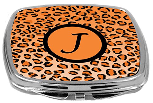 Rikki Knight Compact Mirror, Letter j Initial Orange Leopard Print