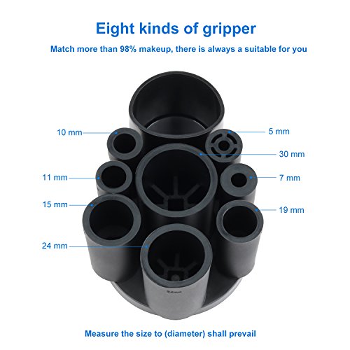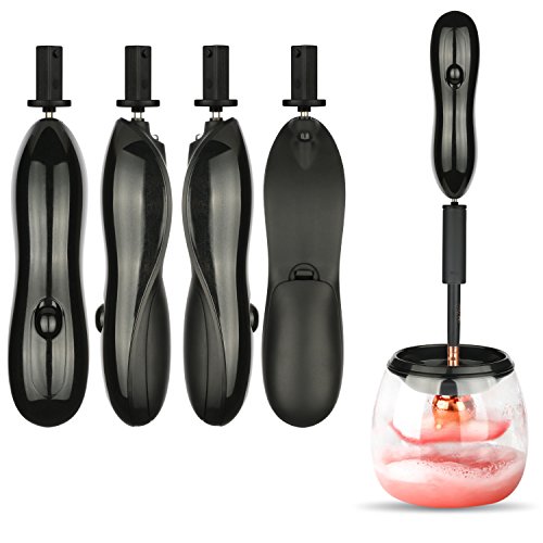 Makeup Brush Cleaner - Deep Clean and Dry All Size Makeup Brushes 360 Degree Rotation with 8 Rubber Collars In Seconds (Black)