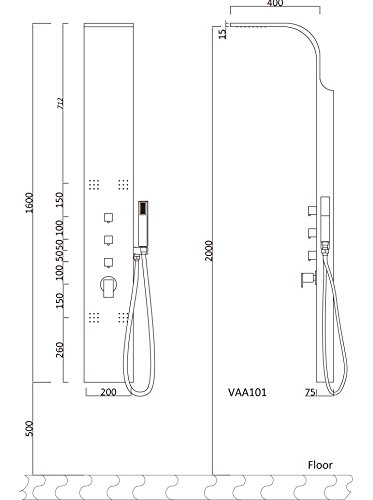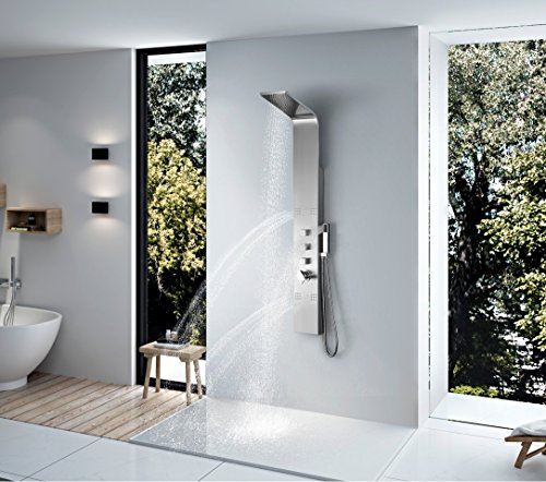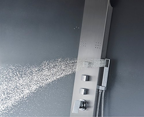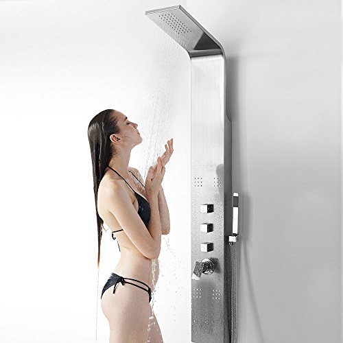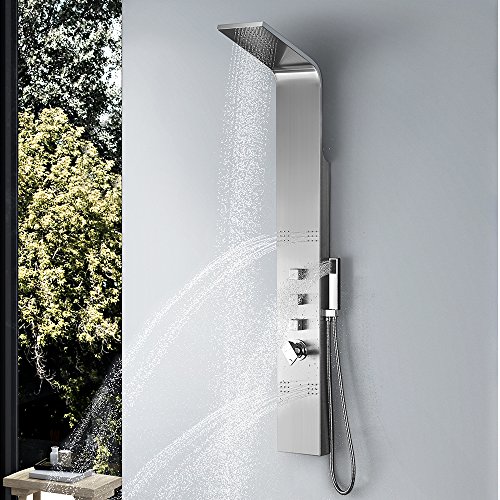 Vantory 63" Stainless Steel Wall Mount Rainfall Showerhead Multi-Function Shower Tower Panel Massage Systerm With Body Jets, Brushed Nickle