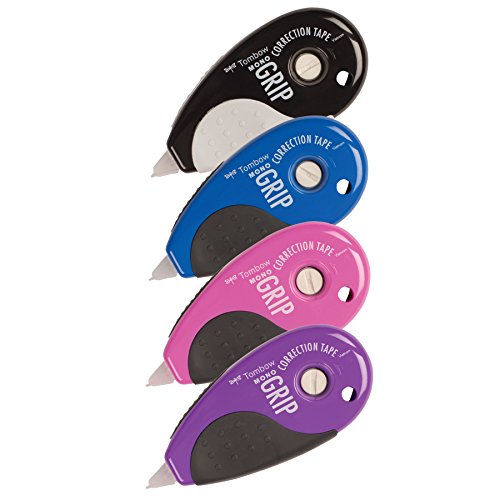 Tombow Mono Top Action Grip Correction Tape, Assorted Colors, 4-Pack