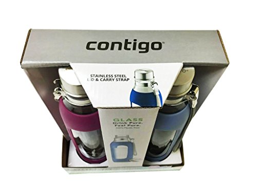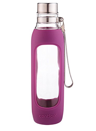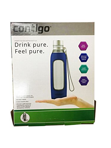 Drink pure. Feel pure. For a completely pure drinking experience, the new Contigo Purity Glass Water Bottle is an ideal solution for those who prefer a plastic-free container. Entirely BPA, BPS, Lead and Phthalate-free and made with no plastic components, the 24 oz. Purity Glass Water Bottle is constructed with glass, stainless steel and food-grade silicone materials. A silicone sleeve helps protect the bottle, while a wide-mouth design allows for easy water intake. A fashionable stainless steel carry strap is great for on the go. For added ease of use, all components are top-rack dishwasher safe.Feature