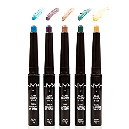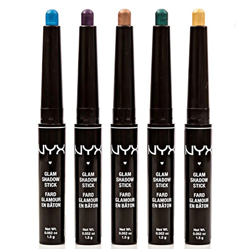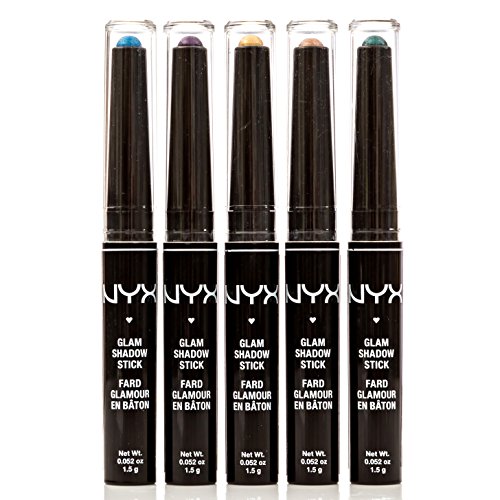 Beauty mavens rejoice. Why stick with one great color when you can have 5 instead? This pretty set of 5 Glam Shadow Sticks from NYX Cosmetics will make you feel like a makeup artist with five dynamic colors that include: Illuminating Topaz, Elegant Marble, Glistening Emerald, Vibrant Amethyst and Yellow Diamond. They're sized just right making them easy to pop into your purse or makeup bag for quick touch ups anytime. Wear solo to punctuate the corners of your eyes, or as a highlighter for your brow bone. If you're a little more adventurous, go ahead and blend the creamy colors together to switch up your look in a flash. With bold, saturated color and a hint of shimmer, you can create multiple looks to suit any occasion. How to use: Apply the glam stick directly to your lids and blend with your fingers or an eyeshadow brush. To extend your wearing time and minimize creasing, apply a makeup primer to your bare lids first. Whether it's a special occasion, a night on the town or everyday glam, this set of 5 NYX Cosmetics Glam Shadow Sticks are a great way to shake up your makeup giving you the power to create endless looks with head-turning results.Feature