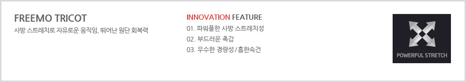 트리코트 소재를 사용하여 스트레치성이 우수하며 세탁후에도 형태 복원력이 우수합니다.