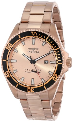 -. Binding : Watch -. Brand : Invicta -. Color : rose gold -. Department : mens -. EAN : 0886678185054 -. Feature : The Invicta Pro Diver offers classic dive styling with clean lines, a unidirectional bezel, protective flame fusion crystal, and an 18k rose gold ion-plated stainless steel case and bracelet. / Includes impact resistance, waterproof yellow watch case / Rose gold dial with black and white hands and hour markers / luminous / Water resistant to 100M (330 ft) -. IsAdultProduct : 0 -. Label : Invicta -. Manufacturer : Invicta -. Model : 15185SYB -. MPN : 15185SYB -. PackageQuantity : 1 -. PartNumber : 15185SYB -. ProductGroup : Watch -. ProductTypeName : WATCH -. Publisher : Invicta -. ReleaseDate : 2013-10-17 -. Studio : Invicta -. Title : Invicta Men's 15185SYB Pro Diver Rose Gold Dial 18k Ion-Plated Stainless Steel Watch with Impact Case -. UPC : 886678185054