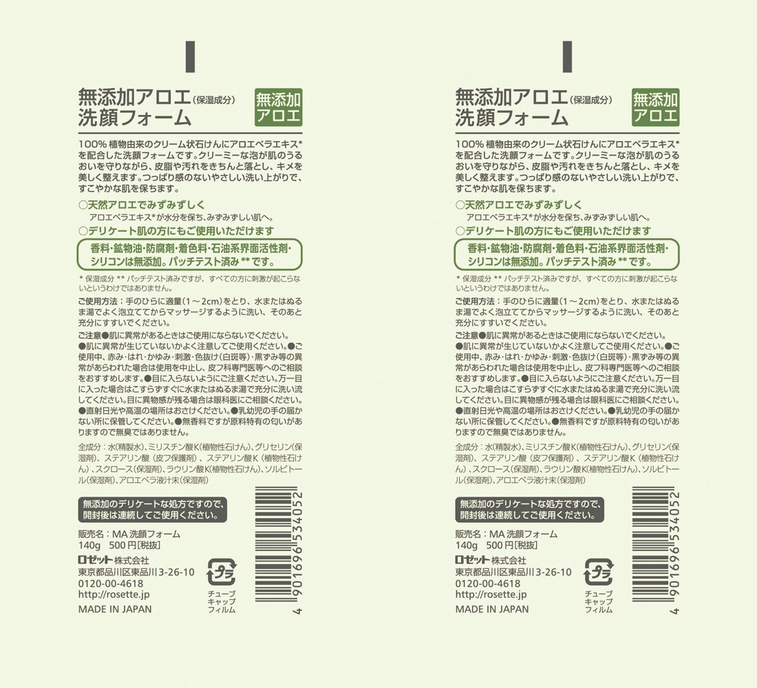 Rosette additive-free aloe cleansing foam 140g × 2-pack AZ