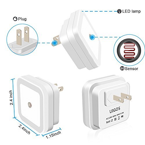 Uigos LED Night Light Lamp with Smart Sensor Dusk to Dawn Sensor, Daylight White, 0.5W Plug-In , 6 Piece