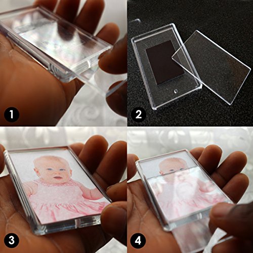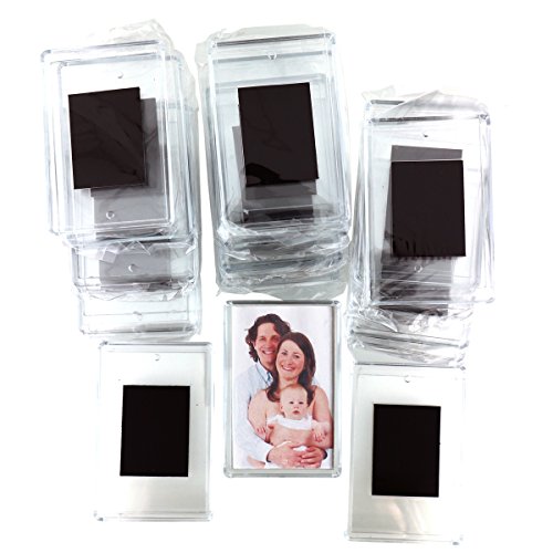 BEST MATERIAL - This pack of 50 magnetic photo frames is manufactured from high quality clear acrylic plastic which displays your photos beautifully. With a magnetic back and a slightly raised edging, your frame will stick firmly to your fridge and your pictures wont bend or get damaged.